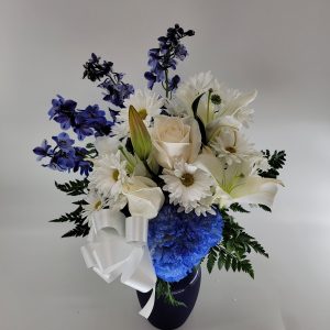 Sweet as candy! This soft pink and white bouquet is a feminine choice for any occasion. Stems: Pink and white flowers including roses, miniature carnations and button spray chrysanthemums